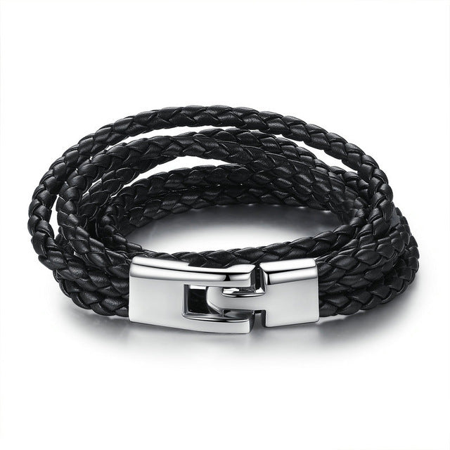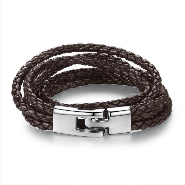 BAMOER Fashion Leather Bracelet Wide Retro Black & Brown Color Chain Bracelets for Men & Women Jewelry pulseras PI0288