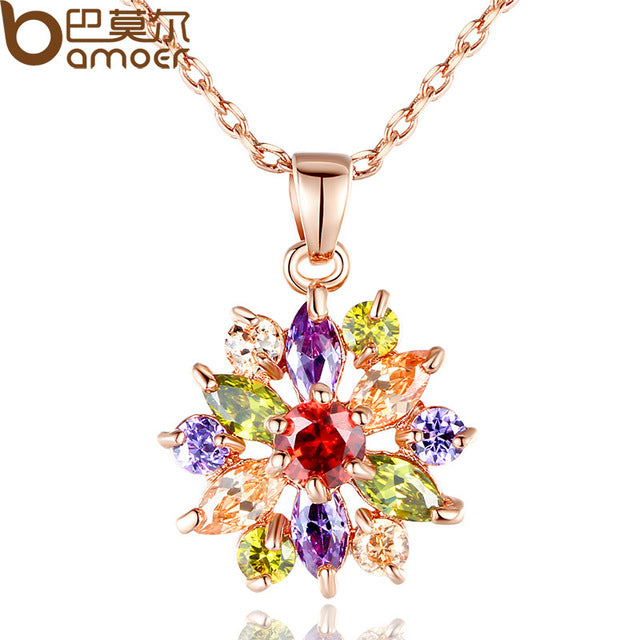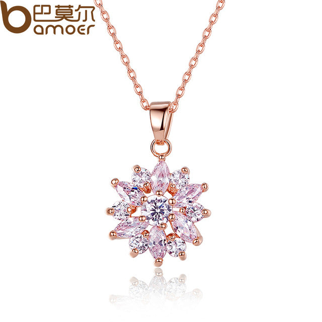 BAMOER Hot Sell Gold Color Flower Necklaces Pendants with High Quality Cubic Zircon For Women Birthday Gift JIN024